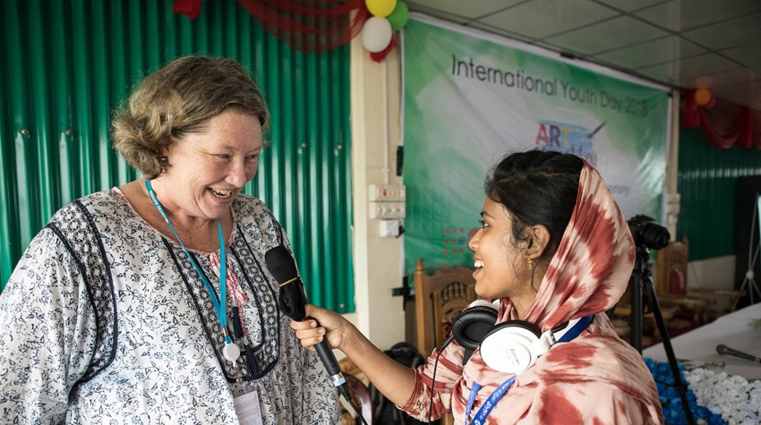 The 'Voice of Palong', a weekly 30-minute radio program, recently completed a show including how UNFPA is providing safe spaces for youth with life skills programs created especially for them. Told by refugees in their own language, reproductive health and gender issues have featured regularly on the radio show, including what happens in the Women Friendly Spaces, what to do if pregnant and the role of a midwife. Supporting initiatives that reach women and girls in an audio format helps share information, dispel myths and grow awareness and solutions to the countless difficulties of navigating life in camp.